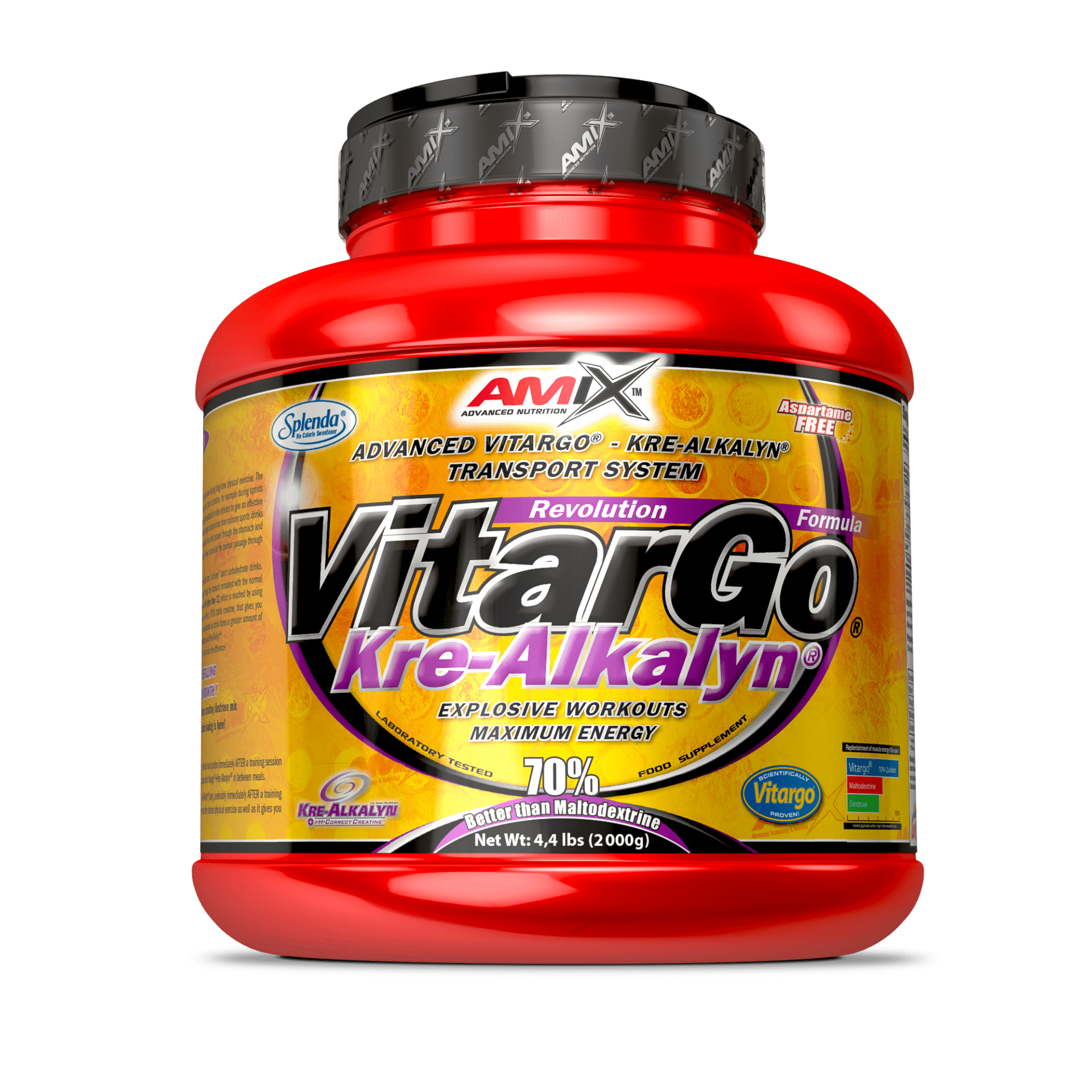 Amix TM Vitargo® + Kre-Alkalyn® es un complemento alimenticio a base de Vitargo® y Kre-Alkalyn®. Vitargo® es un carbohidrato patentado con propiedades únicas (*), cuya estructura molecular recuerda al glicógeno, especialmente formulado para deportistas. Vitargo® ha sido clínicamente testado en el Instituto Karolinska de Estocolmo.