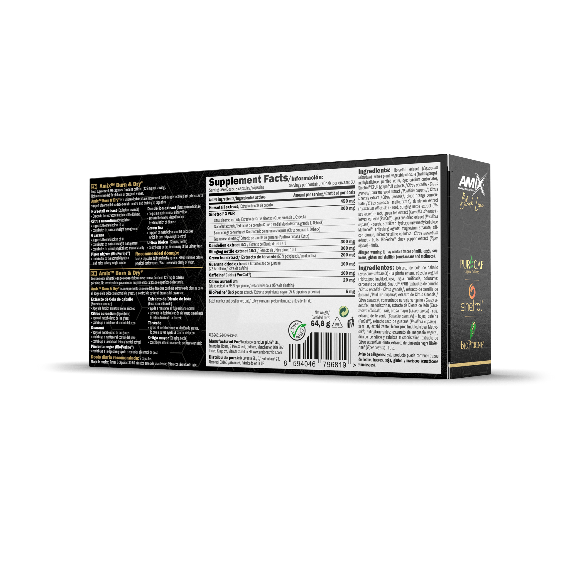 Ingredientes: Extracto de cola de caballo (Equisetum telmateia)-la planta entera, cápsulavegetal (hidroxipropilmetilcelulosa, agua purificada, colorante: carbonato de calcio), Sinetrol®XPUR (extractos de pomelo /Citrus paradisi-Citrus grandis/, extracto de semilla de guaraná/Paullinia cupana/; extracto de Citrus sinensis / Citrus sinensis/, concentrado naranja sanguina/Citrus sinensis/; maltodextrina), extracto de Diente de león (Taraxacum officinale)-raíz, ortigamayor (Urtica dioica)-raíz, extracto de té verde (Camellia sinensis)-hojas, cafeína (PurCaf®),extracto seco de guaraná (Paullinia cupana)-semillas, estabilizante: hidroxipropilmetilcelulosaMethocel ®; antiaglomerantes: estearato de magnesio vegetal, dióxido de silicio y celulosamicrocristalina; extracto de Citrus aurantium-fruto, extracto de pimienta negra BioPerine®(Piper nigrum)–fruto.Aviso de alérgenos:Este producto puede contener trazas deleche,huevos, soja, gluten y mariscos (crustáceosy moluscos).